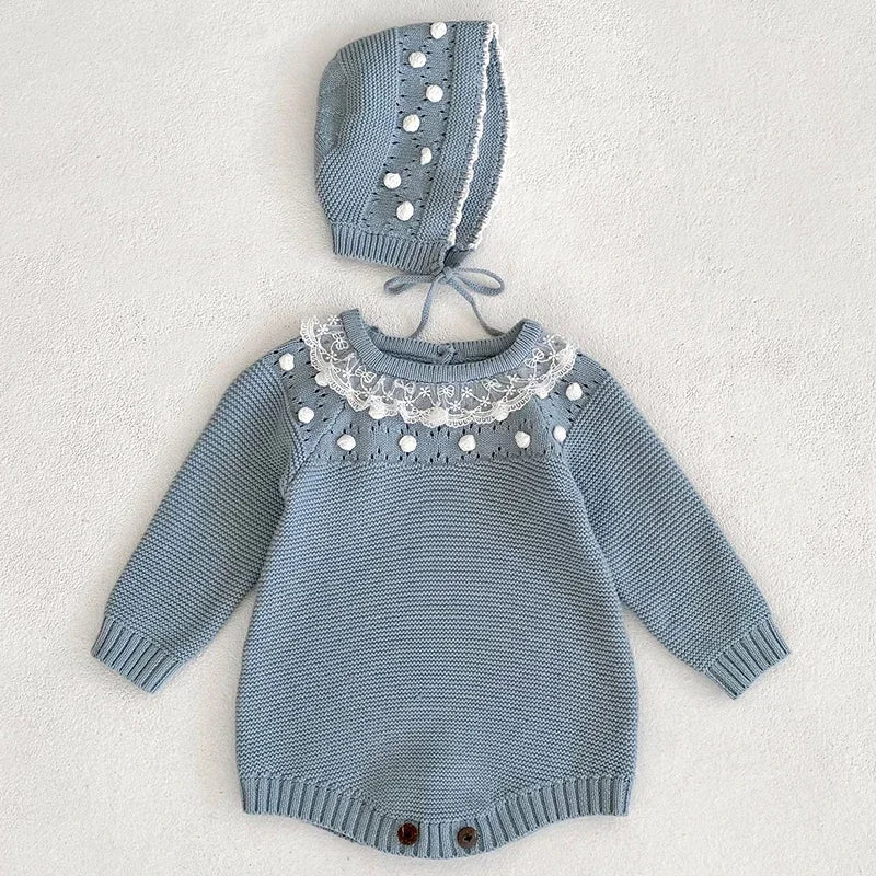 0-24M Baby Girl Romper Knit New Newborn Lace Warm Long Sleeve Jumpsuit Infant Princess Party Romper Toddler Fall Spring Clothing