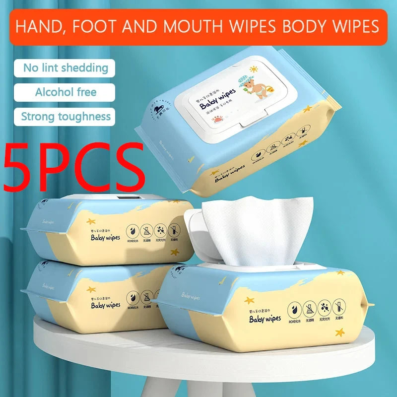 1/2/3/5PCS Baby Newborn Wipes Wet Tissue Non-alcohol Paraben-free Wipe Tisu Basah Bayi Hand, Foot and Mouth Wipes Body Wipes.