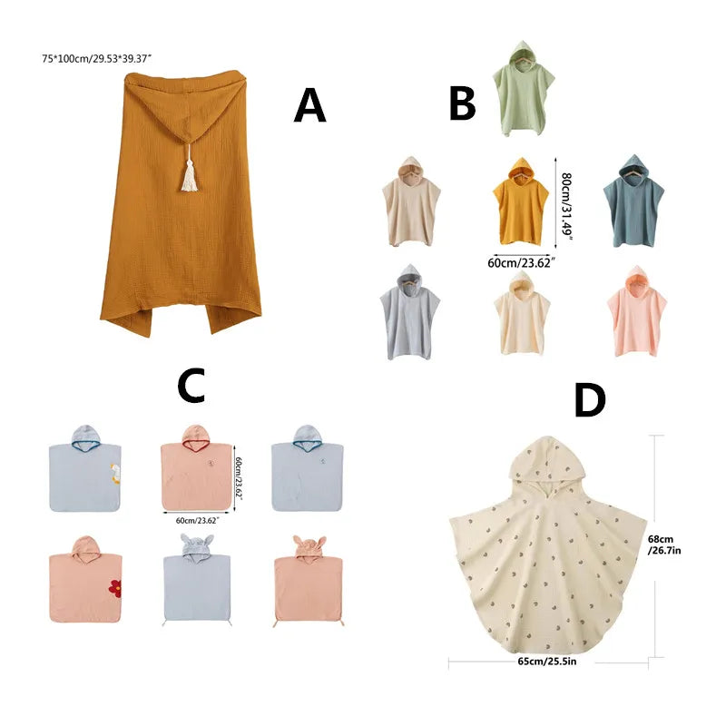Baby Hooded Bath Towel Receiving Blanket Muslin Cotton 4 Layers Gauze Swaddle Wrap Towel Cape Bathrobe Cloak Poncho