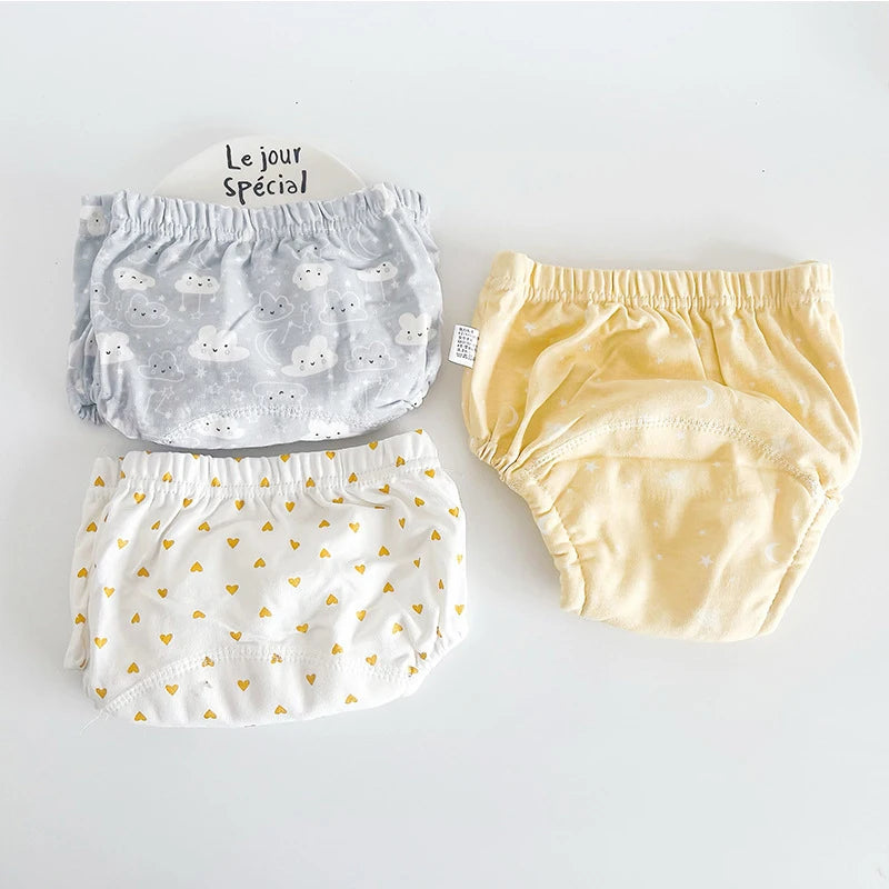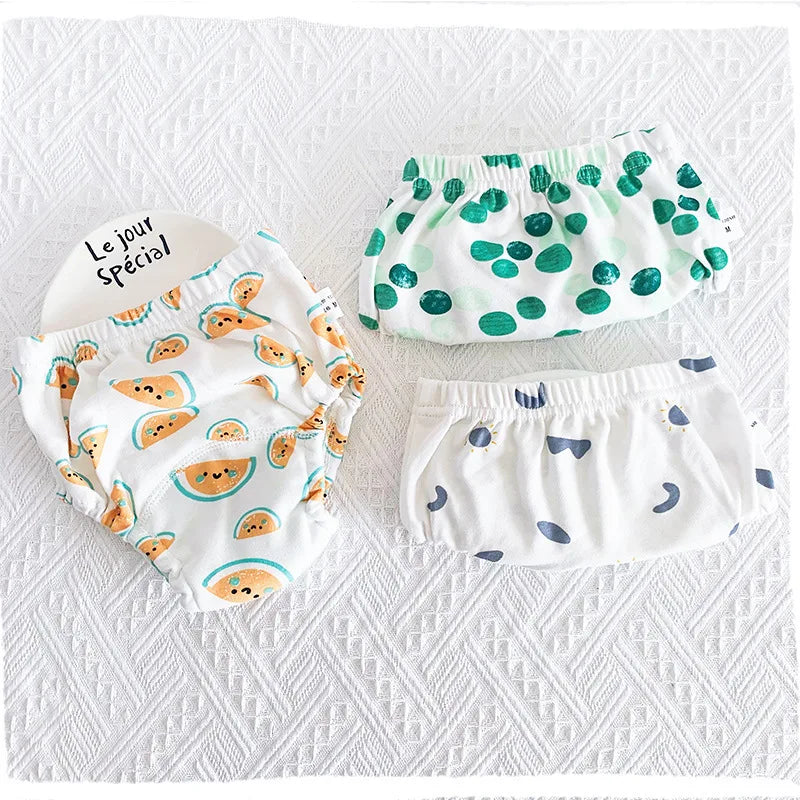 Washable practice diapers as the name suggests, it has the role of "diapers + pants", is a transition necessary for the baby to get rid of diapers, as the internal structure of diaper design, coupled with waterproof inner layer, once the baby wet, a short time will not affect other clothes, and the slightly wet feeling can remind the baby to go to the toilet; Learningdesignes to make it easy for your baby to take off the diapers, more importantly, the shape of the pants. Your baby takes pride in growing up: "Look, I'm not a baby wearing diapers anymore, I've grown up to wear pants...".
