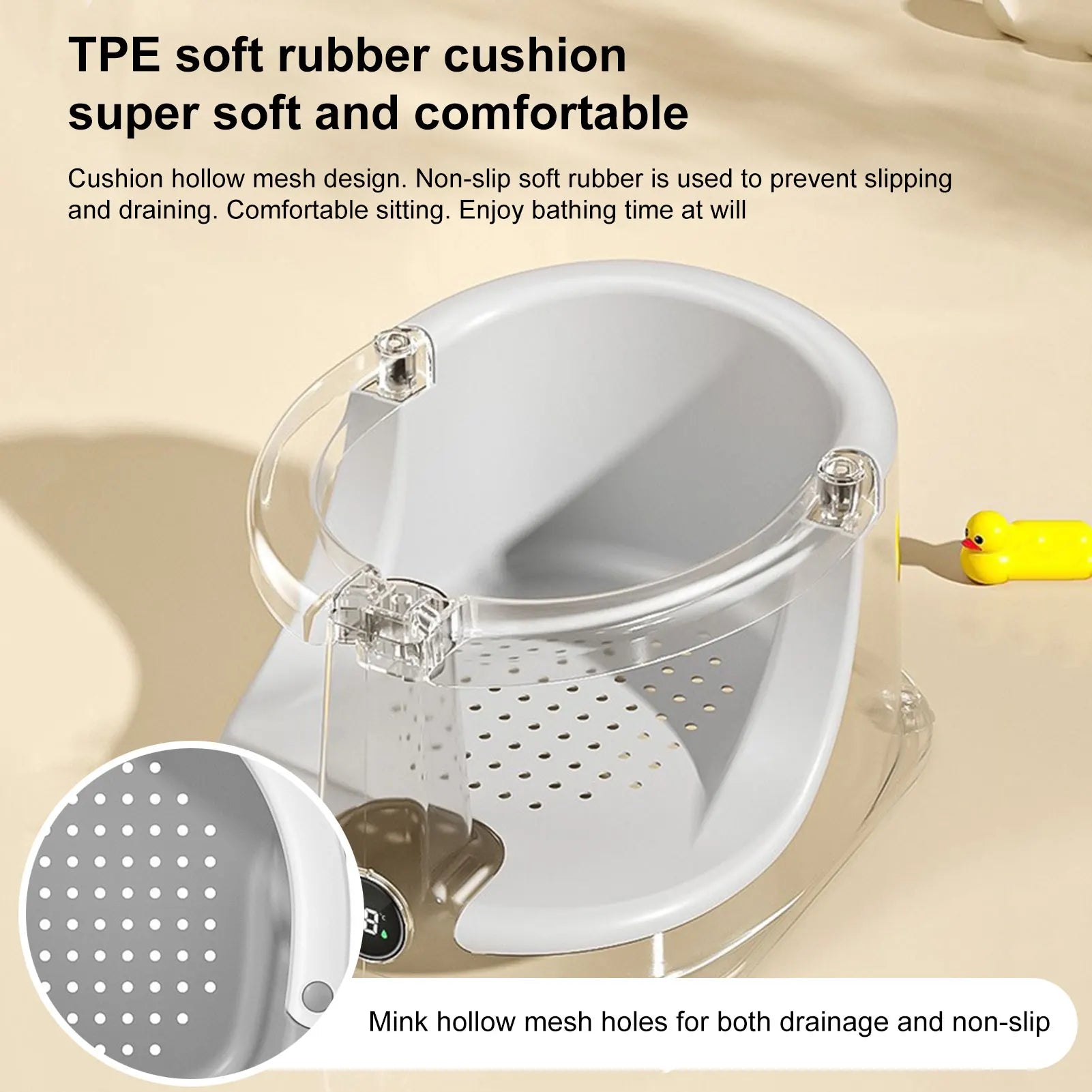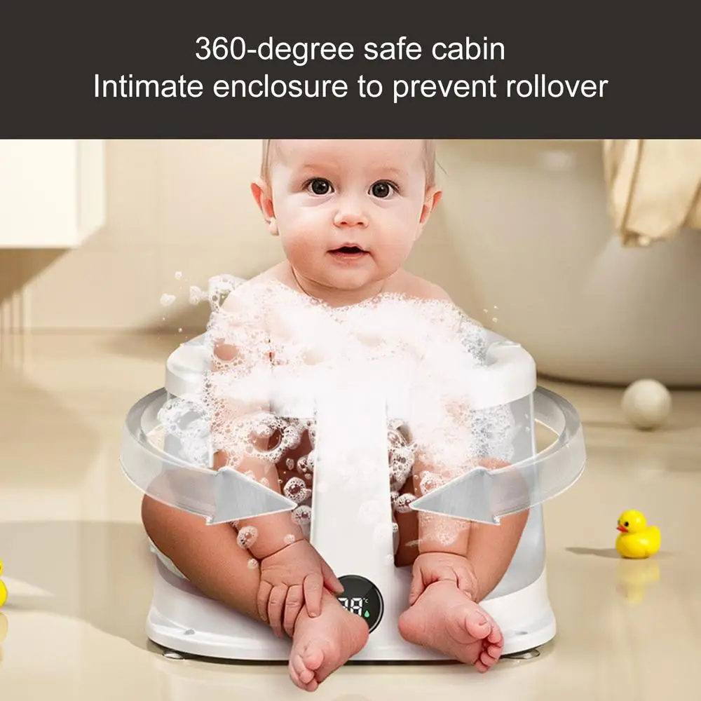 2.Enhanced Bathing Comfort: Real-time monitoring of bath water temperature is enabled by a built-in high-precision sensor in this baby bath seat, designed to protect the baby's delicate skin and enhance bathing safety effortlessly