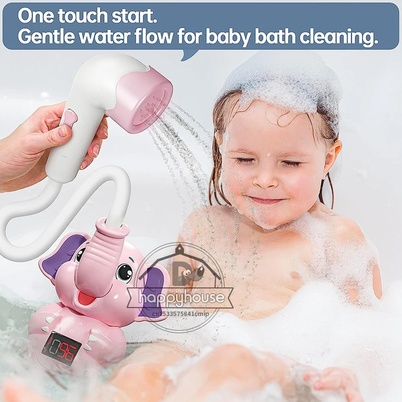Baby Bath Shower Head, Bath Toys with Shower Thermometer, Upgraded Electric Elephant Water Spray Toy for Best Bathtime Fun in The Bathtub for Newborns and Toddlers