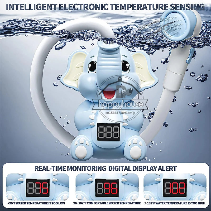 Intelligent Temperature Sensing: Shower toys has a baby bath thermometer with temperature measurement function. No need to open it, the elephant will automatically measure the temperature when it enters the water, and monitors the temperature in real time on the screen to ensure your baby's bathing water is at a comfortable temperature.