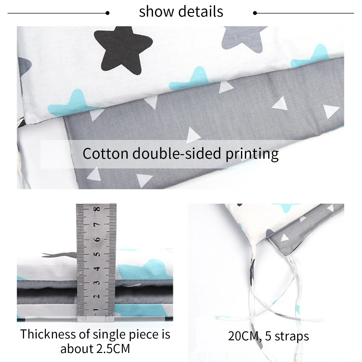 1.Give your baby a warm bed in this cold winter. Our baby breathable crib bumper pads are combined with 100% cotton, Fabric soft and comfortable. It will good to protect your little baby from crib rails and prevent arms, legs from getting caught.