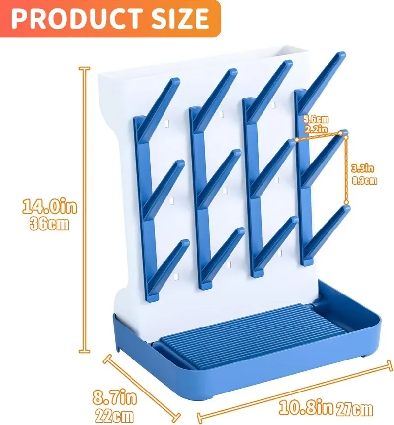 We grandly introduce the bottle drying rack with an innovative vertical stacking design for efficient drying. The multi-layer layout can accommodate multiple bottles to avoid tipping. The open design promotes air circulation and fast drying.