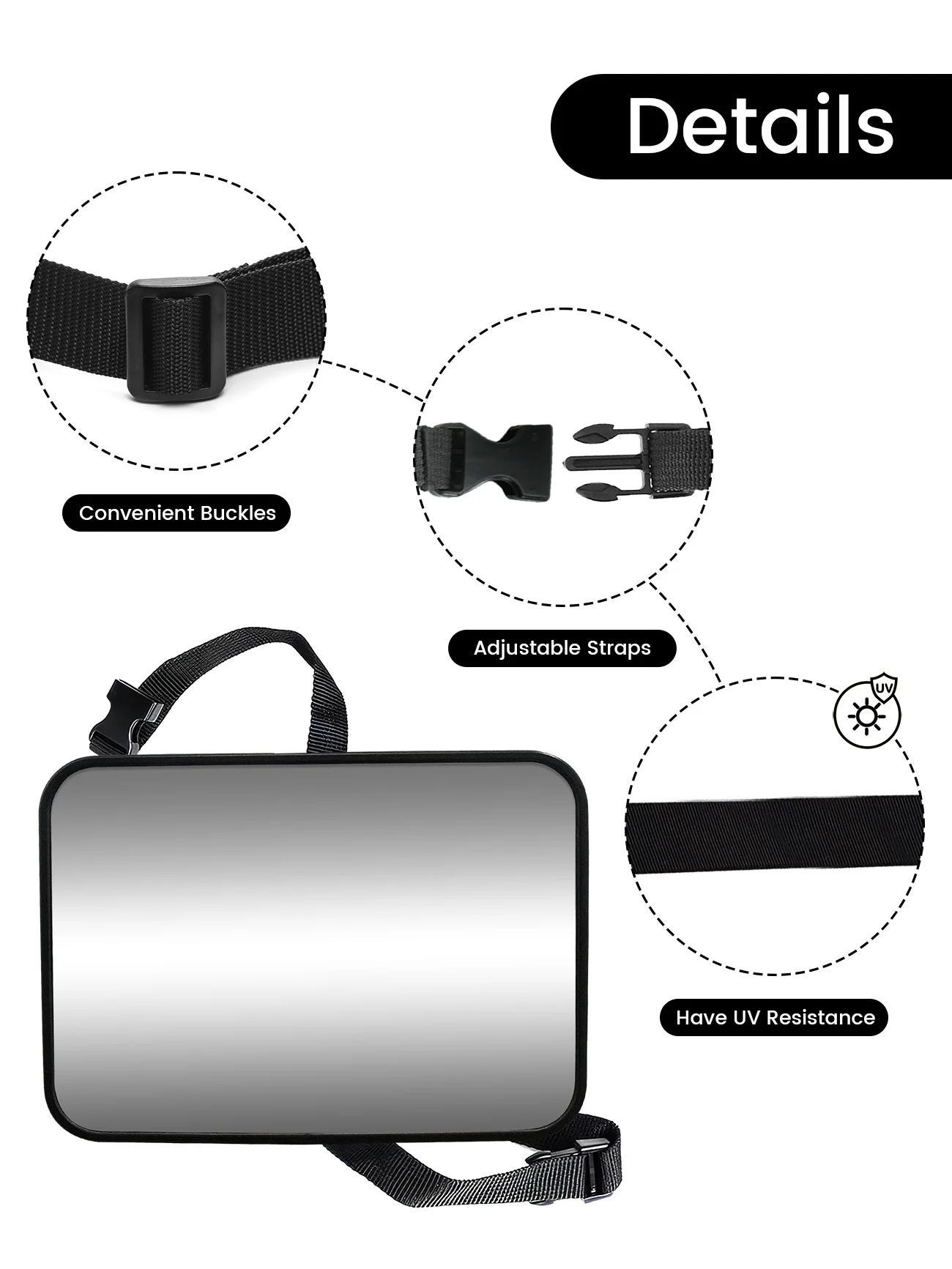 This rearview mirror allows parents to monitor their infant or child while they are seated in the back, ensuring their safety and well-being.