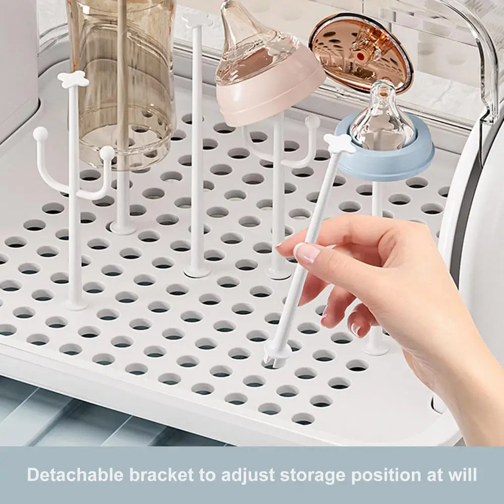 This baby feeding bottle dryer provides an effective drainage design for quick and efficient drying. The removable drying rack ensures no contact with dust or foreign matter for hygienic children's tableware. Odorless and easy to use, this dryer is a must-have for any parent.