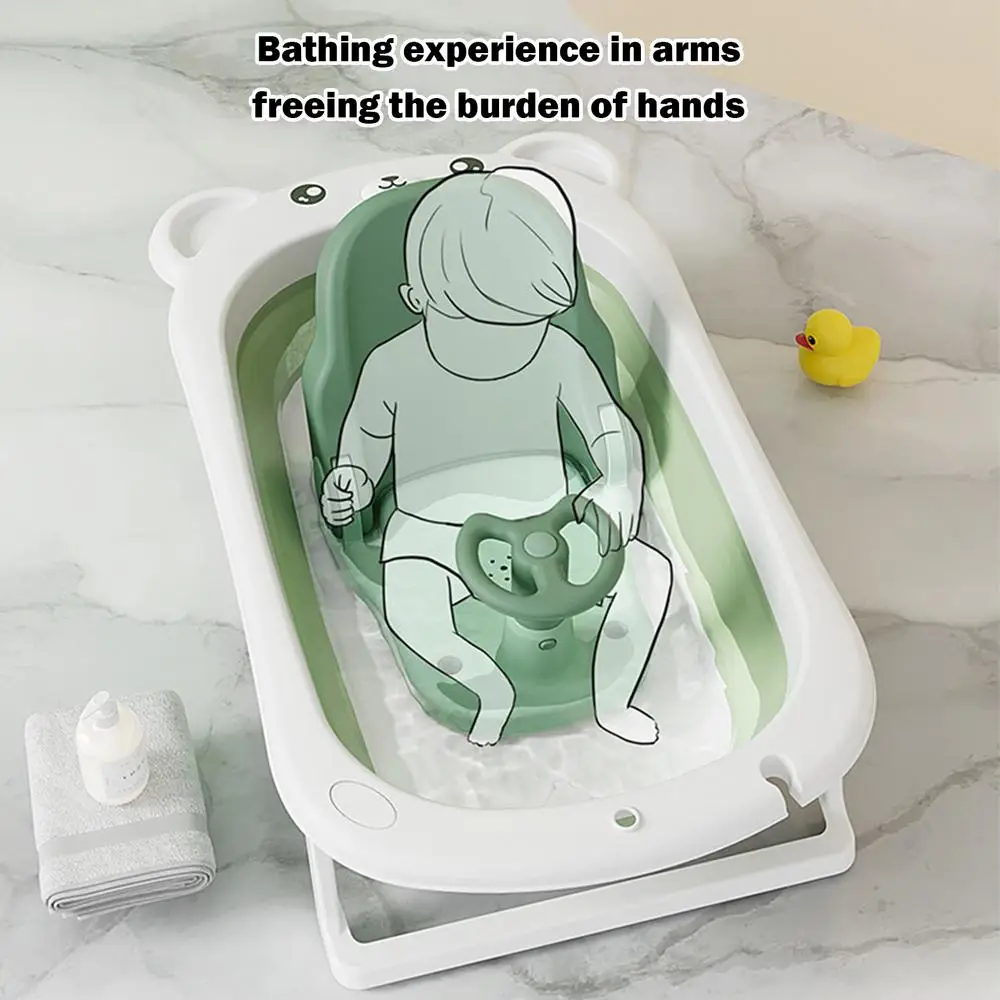 3.Foldable Design: Seamlessly integrating into daily routines, this baby shower seat's foldable design and lightweight structure make it ideal for home use or travel, ensuring it's often ready for use without imposing on your space.