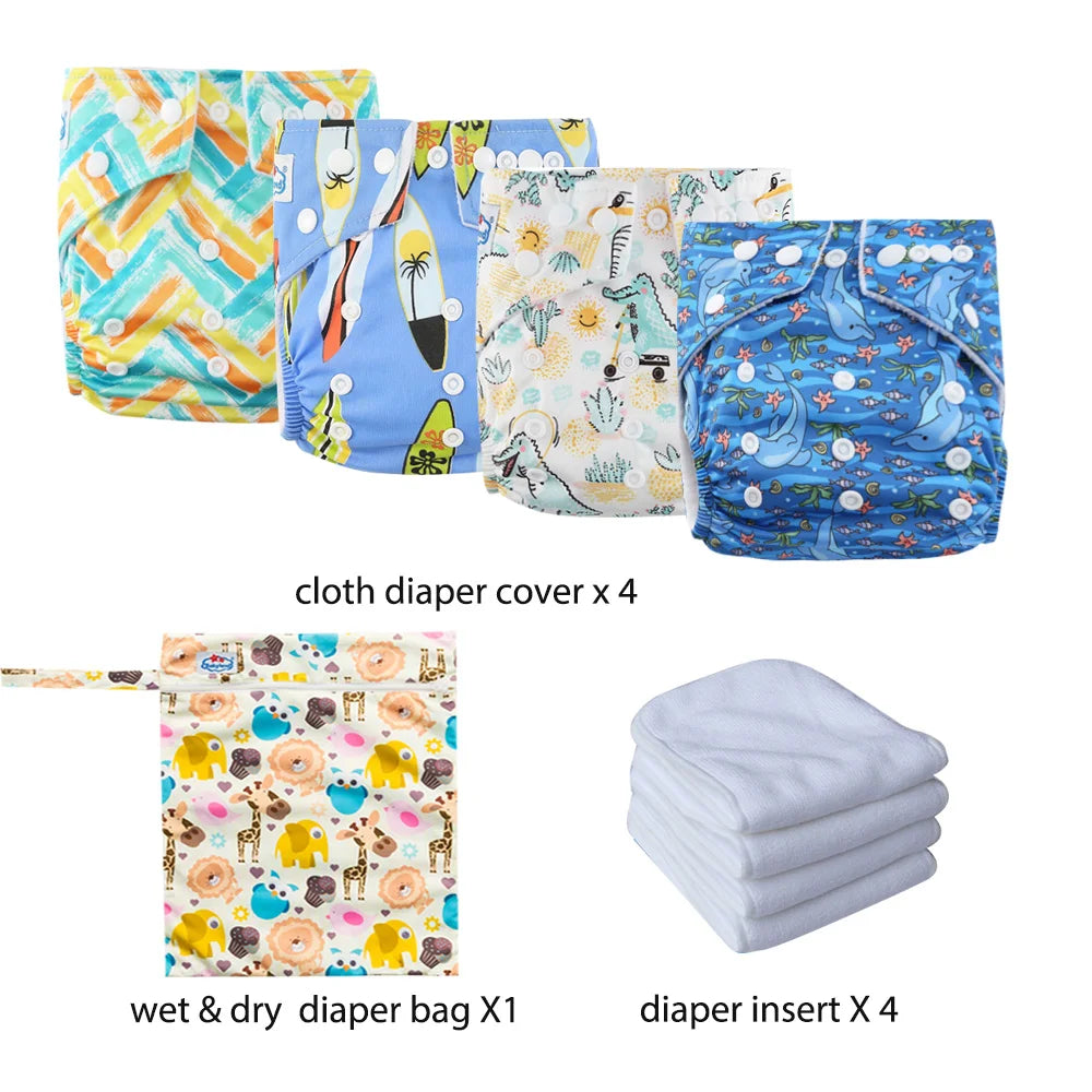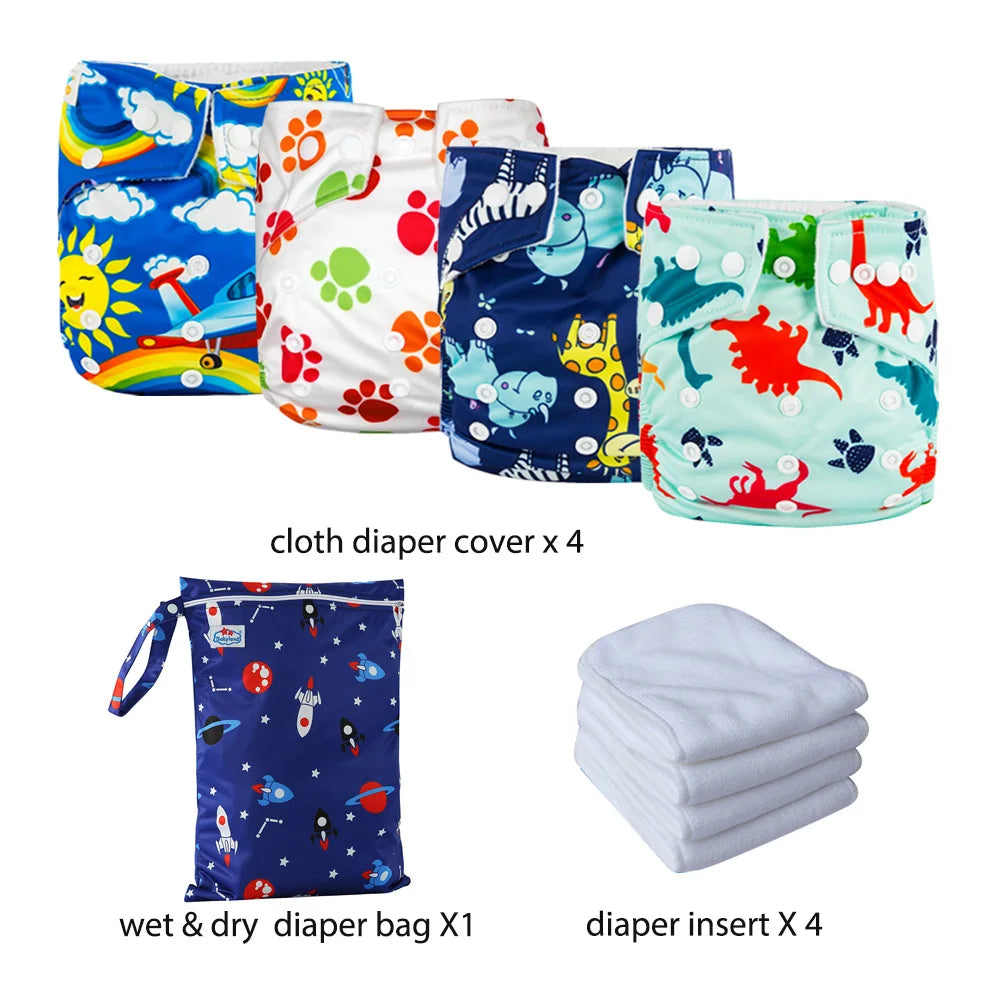 Package includes: 4 cloth diapers