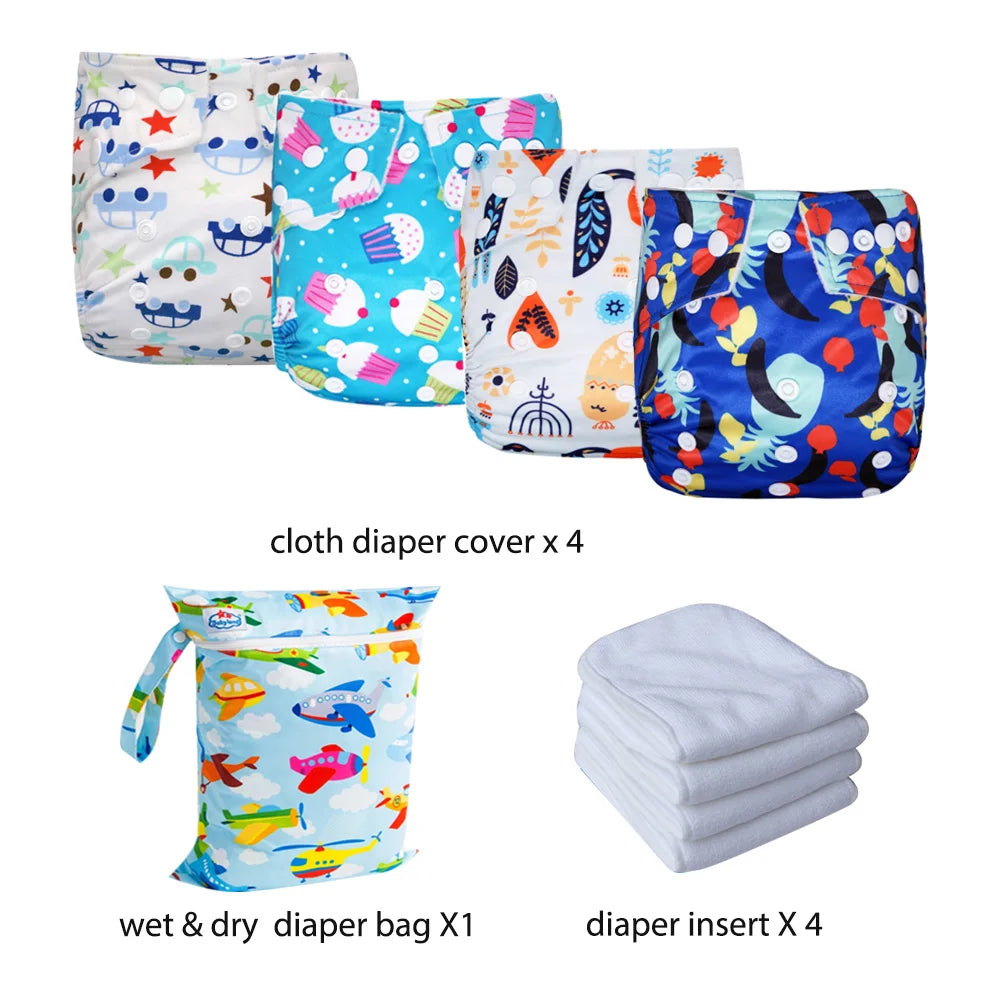 ✔ 4 Cloth Diaper Covers +4 diaper inserts +1 diaper bag