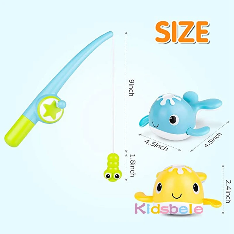 Ideal Gift: An ideal present for birthdays, Christmas, little girls, boys, toddlers, and ages 18 months+; This bath toy set contains a magnetic fishing rod and 2 magnetic whales