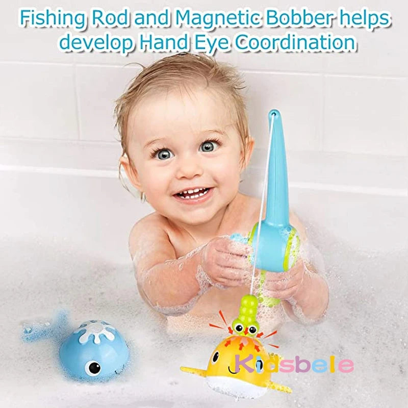 Bath Toys Magnetic Fishing Games Wind-up Swimming Whales Water Table Pool Bath Fun Time Bathtub Tub Toy for Toddlers Kids Girl Boy