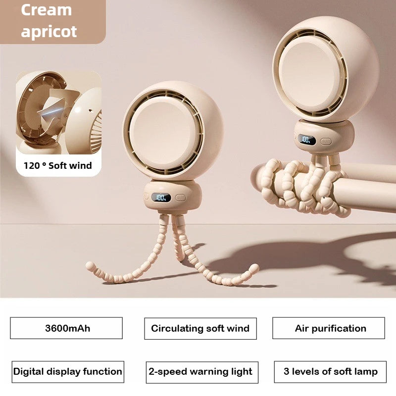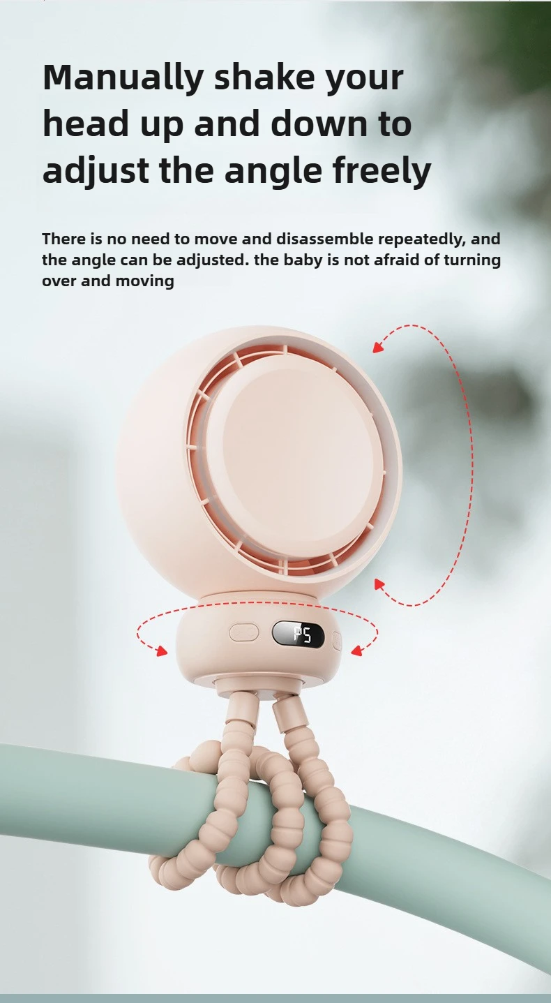 🍃 360° Baby-Friendly Portable Fan with Night Light & Music