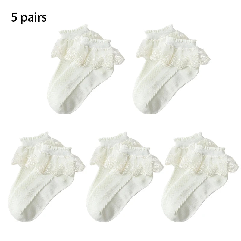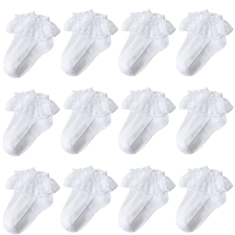 5 pair / 12 pair Baby Girls Kids Socks Lace Ruffle Princess Children Ankle Short Breathable Cotton White Pink Blue Toddler Socks