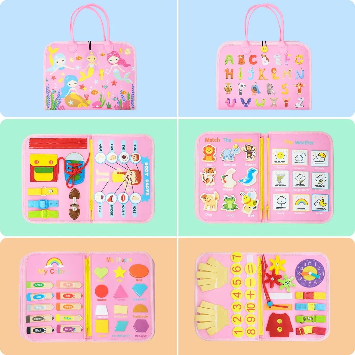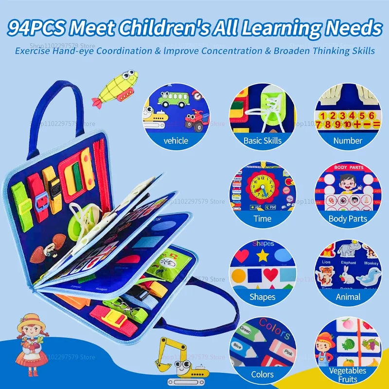 Ideal for home, preschool, or daycare settings—the portable design makes it easy to take anywhere. Perfect for children developing their independence, motor skills, and cognitive abilities. This educational busy board supports early childhood education, encourages imaginative play, and fosters confidence in young learners.