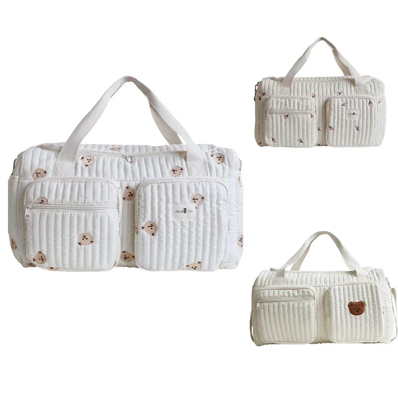 Quilted Tulip Mommy Bag Large Capacity Cartoon Bear Diaper Bag with Versatile Handheld Shoulder Bag for Maternity & Baby Care