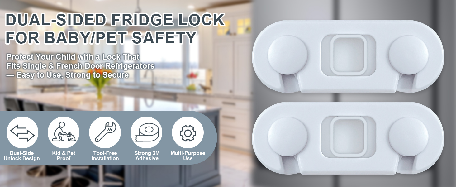 Fits Most Fridges & Cabinets: The ultimate universal safety solution! Compatible with most single-door refrigerators, mini fridges, RV fridges, cabinets, drawers, toilet lids, and more. Functions perfectly as child proof cabinet locks, fridge locks for kids, baby proof cabinet locks, and baby locks for cabinets