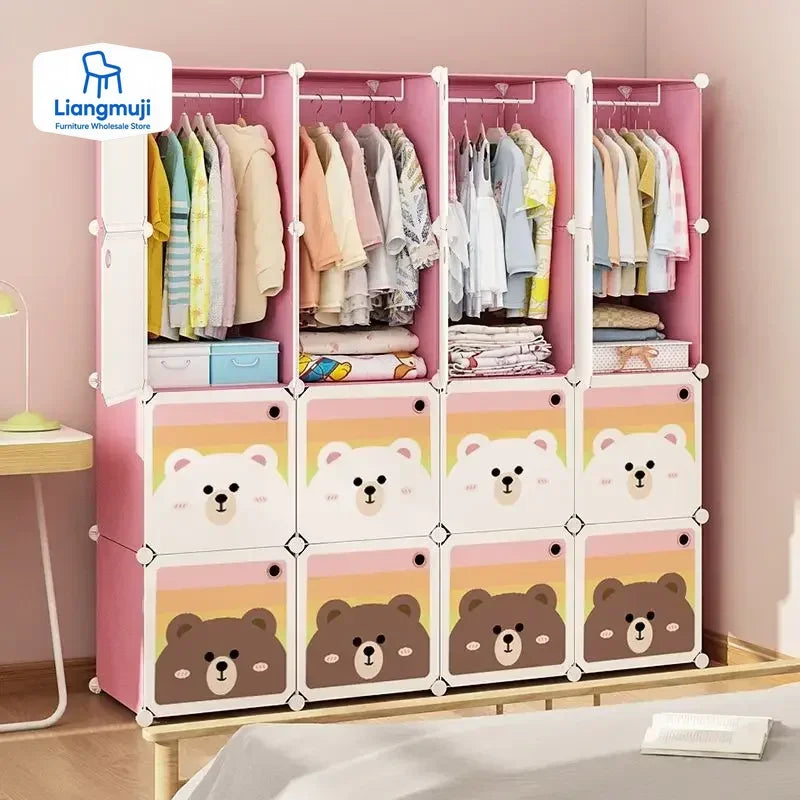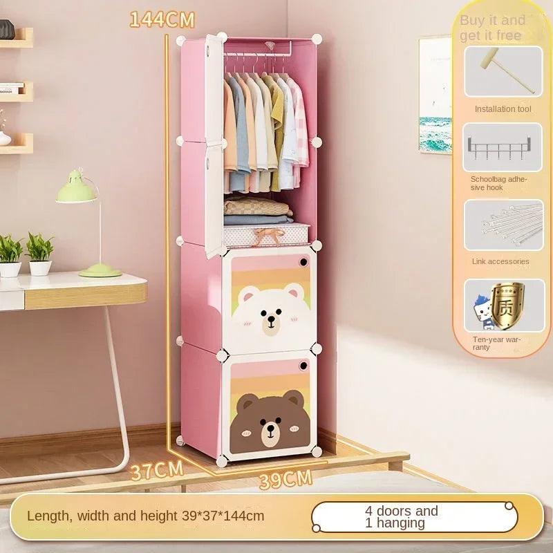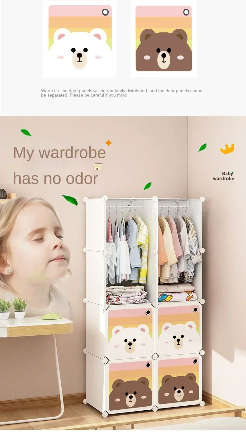 Children's wardrobe, household rental room, plastic simple wardrobe, splicing cabinet, fully enclosed, durable hanging wardrobe for children and babies