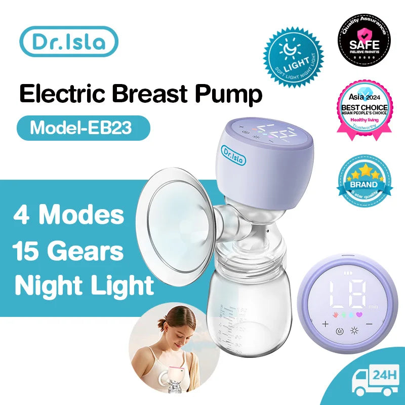 Dr.isla Portable Electric Breast Pump with Night light Milk Puller for Breastfeeding Low Noise with 180ml Milk Bottle BPA-Free
