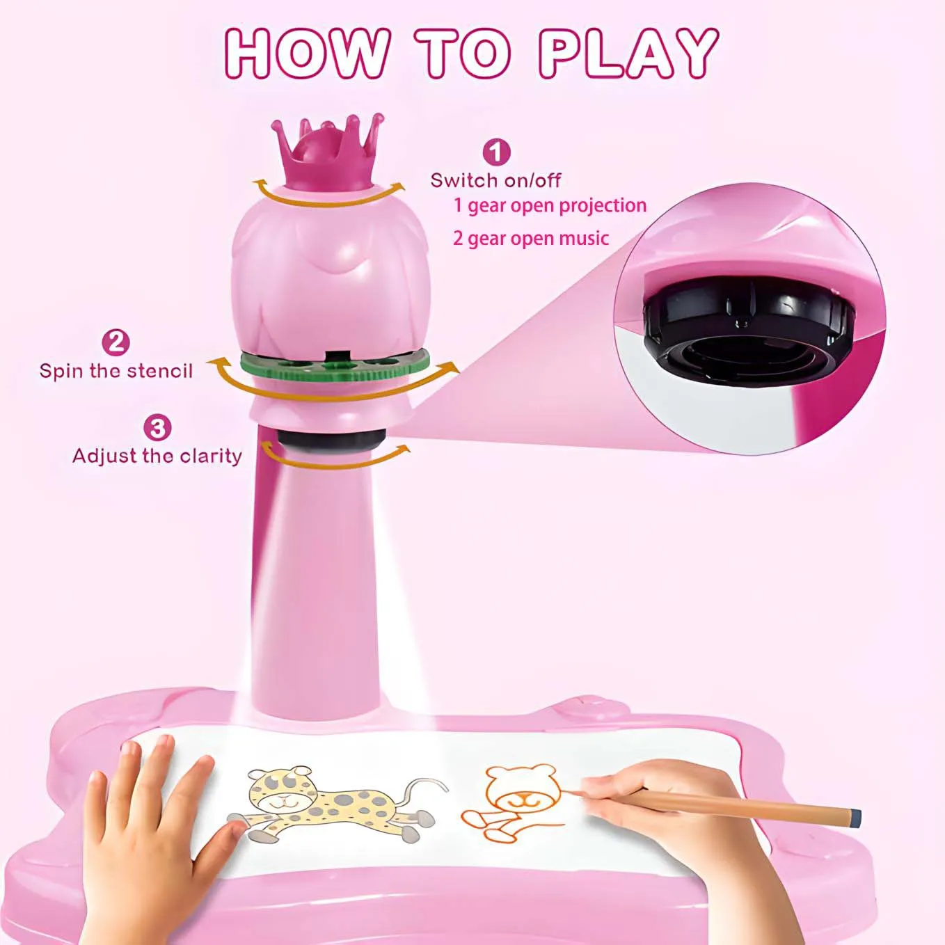 Material Quality:Crafted from durable ABS plastic, this painting table projector ensures long-lasting use and safety for kids.