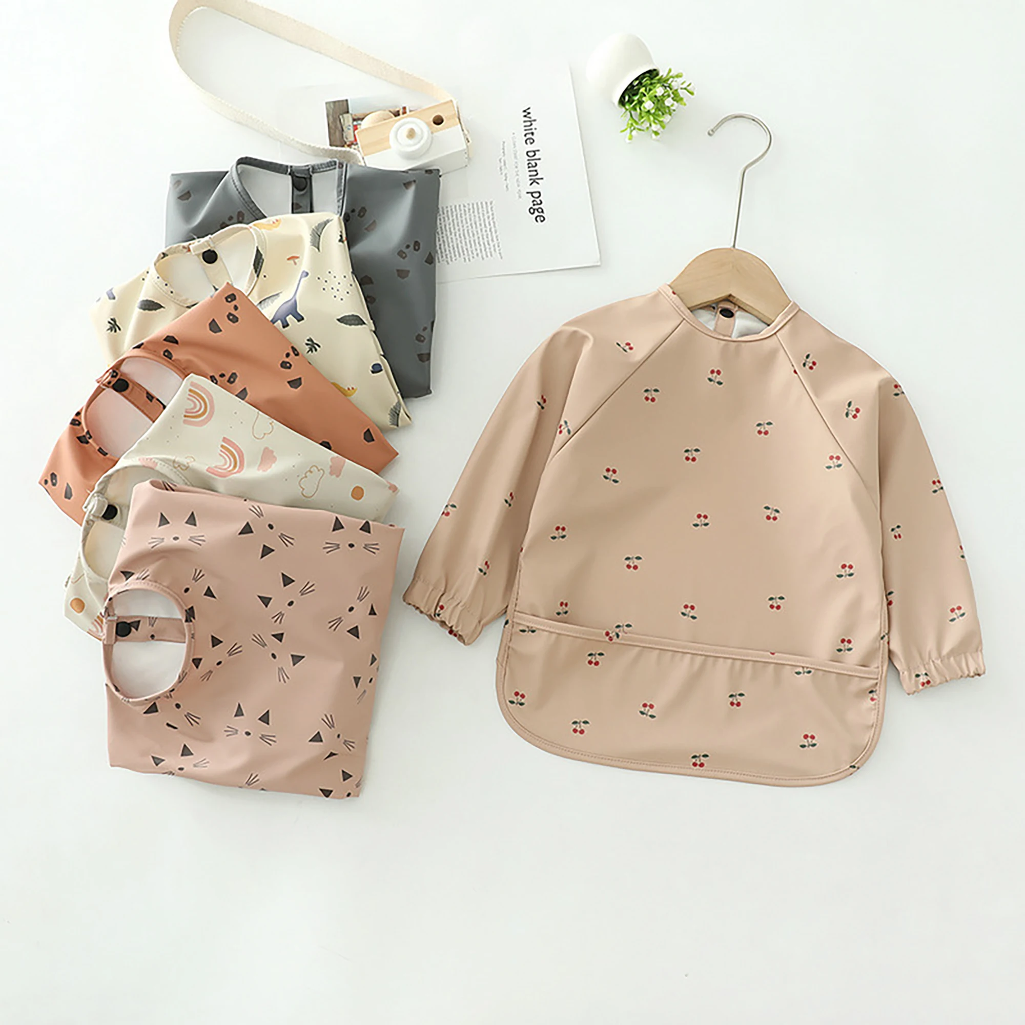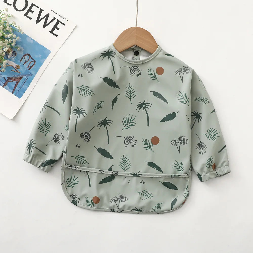 Erduo Newborn Baby Waterproof Feeding Baby Soft Cloth Fabric Bibs Infant Apron Long Sleeve School Food Bib Eating Accessories