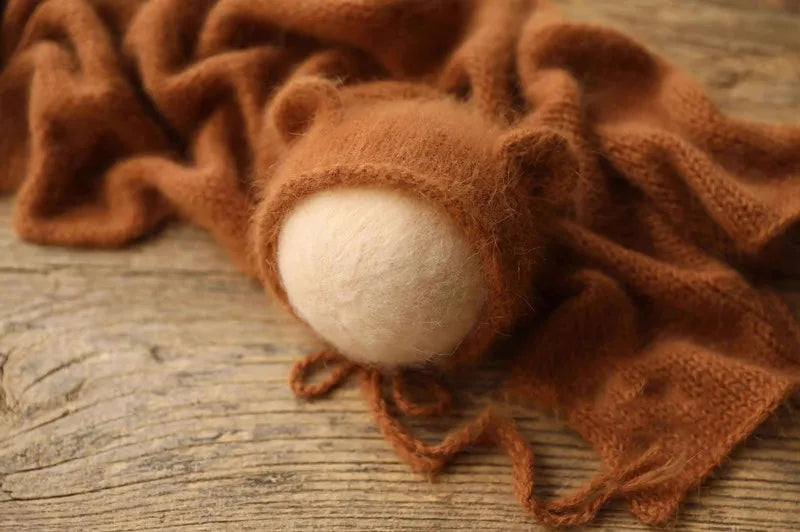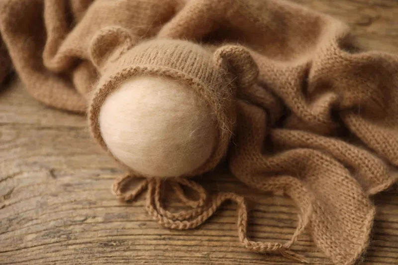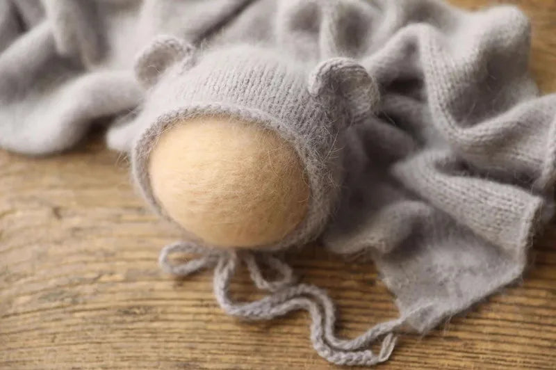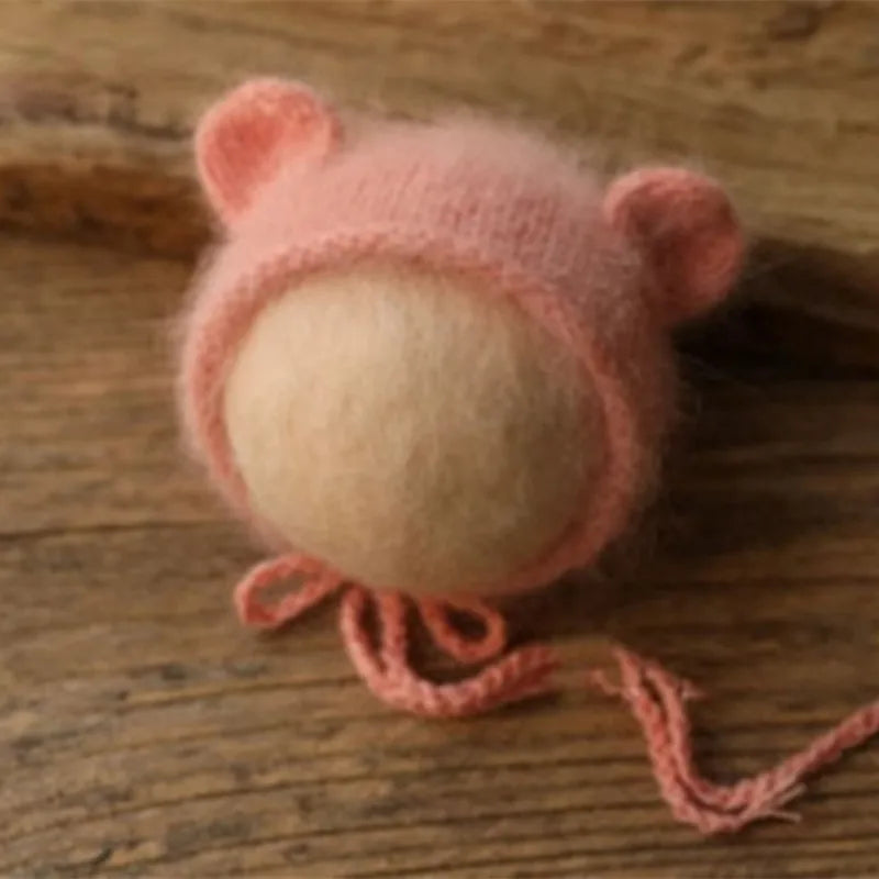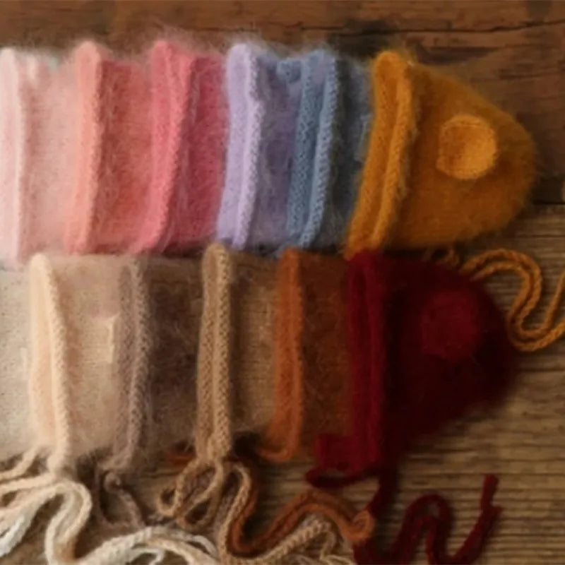 Mink fluff thread knitted small ear hat newborn photography props baby 100 days photo studio cute photo modeling