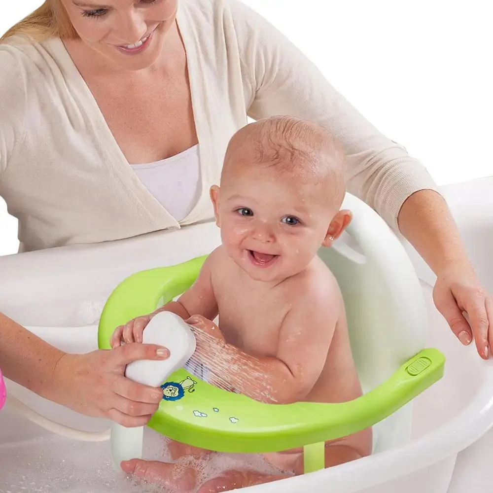 3.【Compact & 】This Compact size of Baby Shower Chair is suitable for multiple places such as a bathtub, bathroom, or another smooth floor, As the drain hole of the bathtub seater, soapy water can be easily rinsed away in no time.