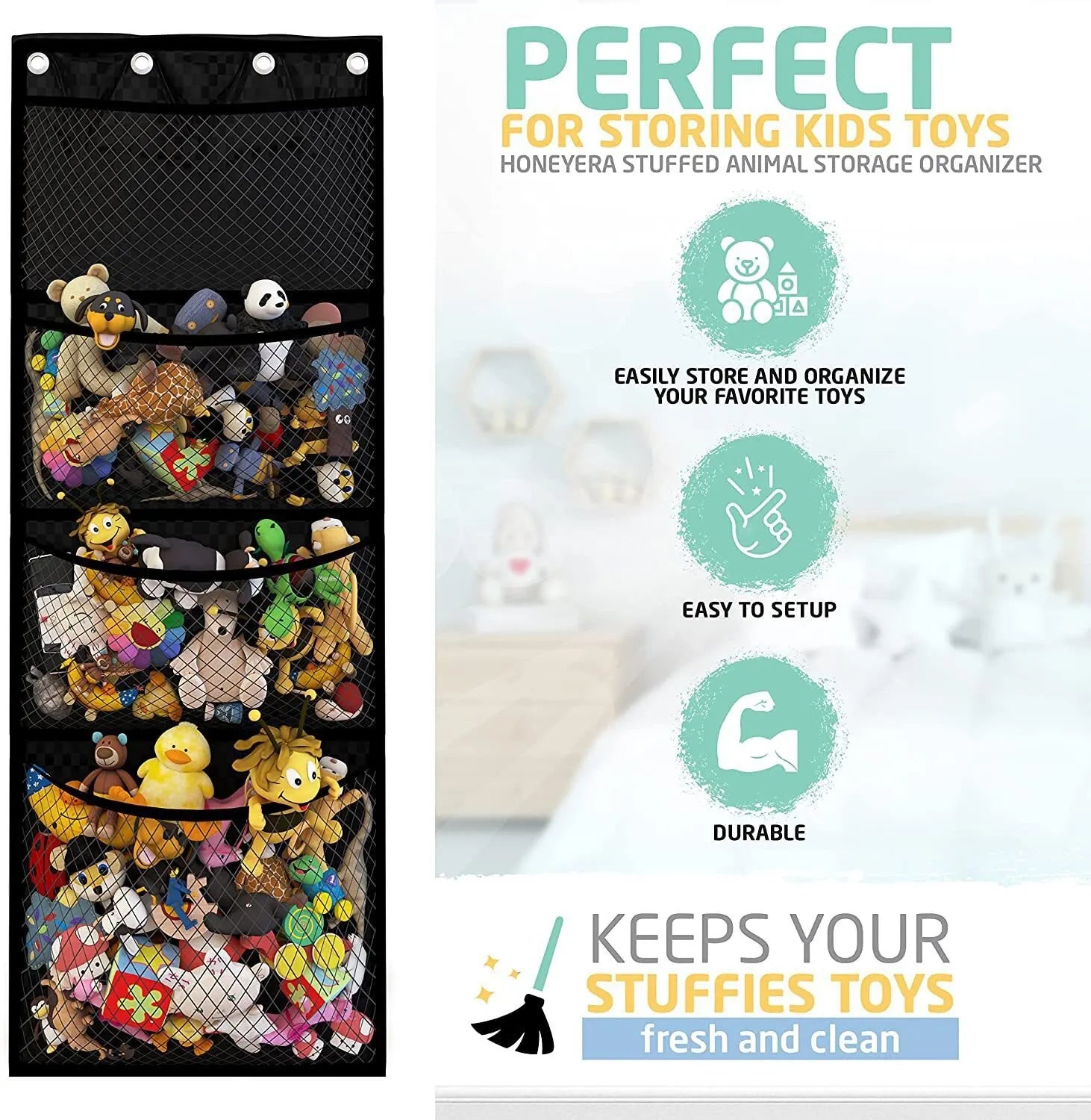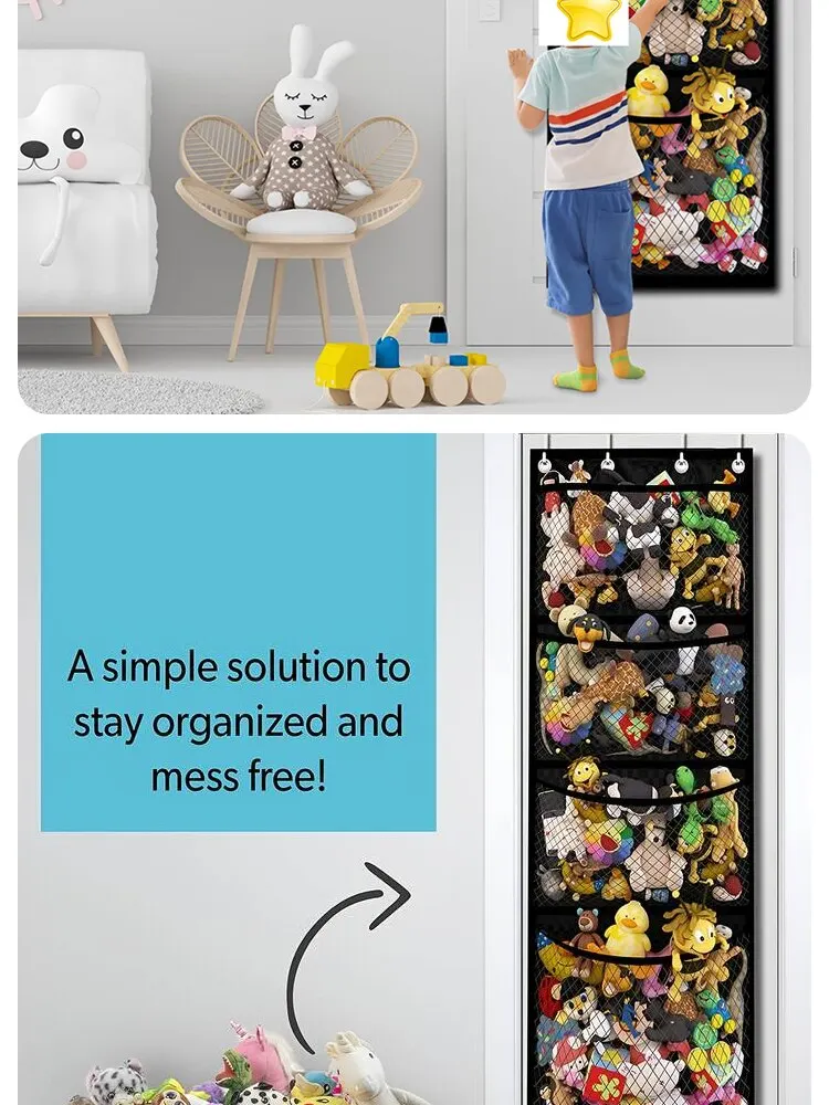 • Convenient accessibility :With the toys hanging within easy reach, your child can access their favorite stuffed animals and toys whenever they want, making it a great organizational solution.