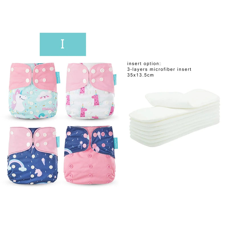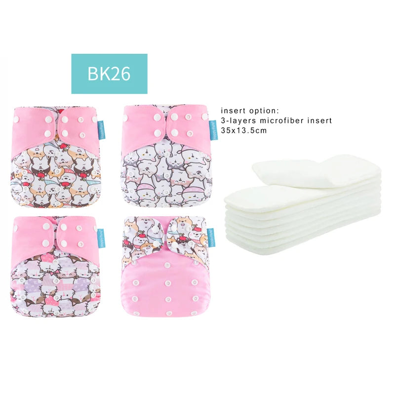 HappyFlute New Hot Sale OS 4Pcs Pocket Diaper+8Pcs Insert Washable &Reusable Baby Nappy Adjustable Diaper Cover