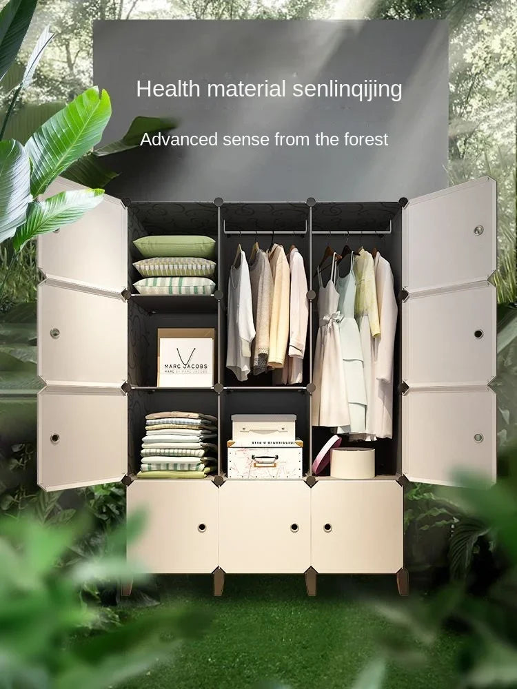 Simple wardrobe, household bedroom, rental room, assembly plastic, thickened and reinforced storage cabinet, net red small wardrobe