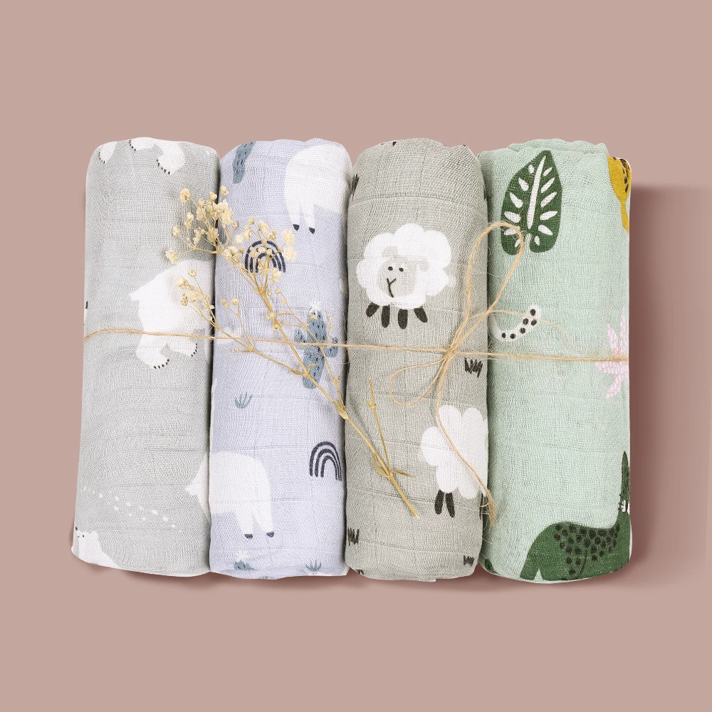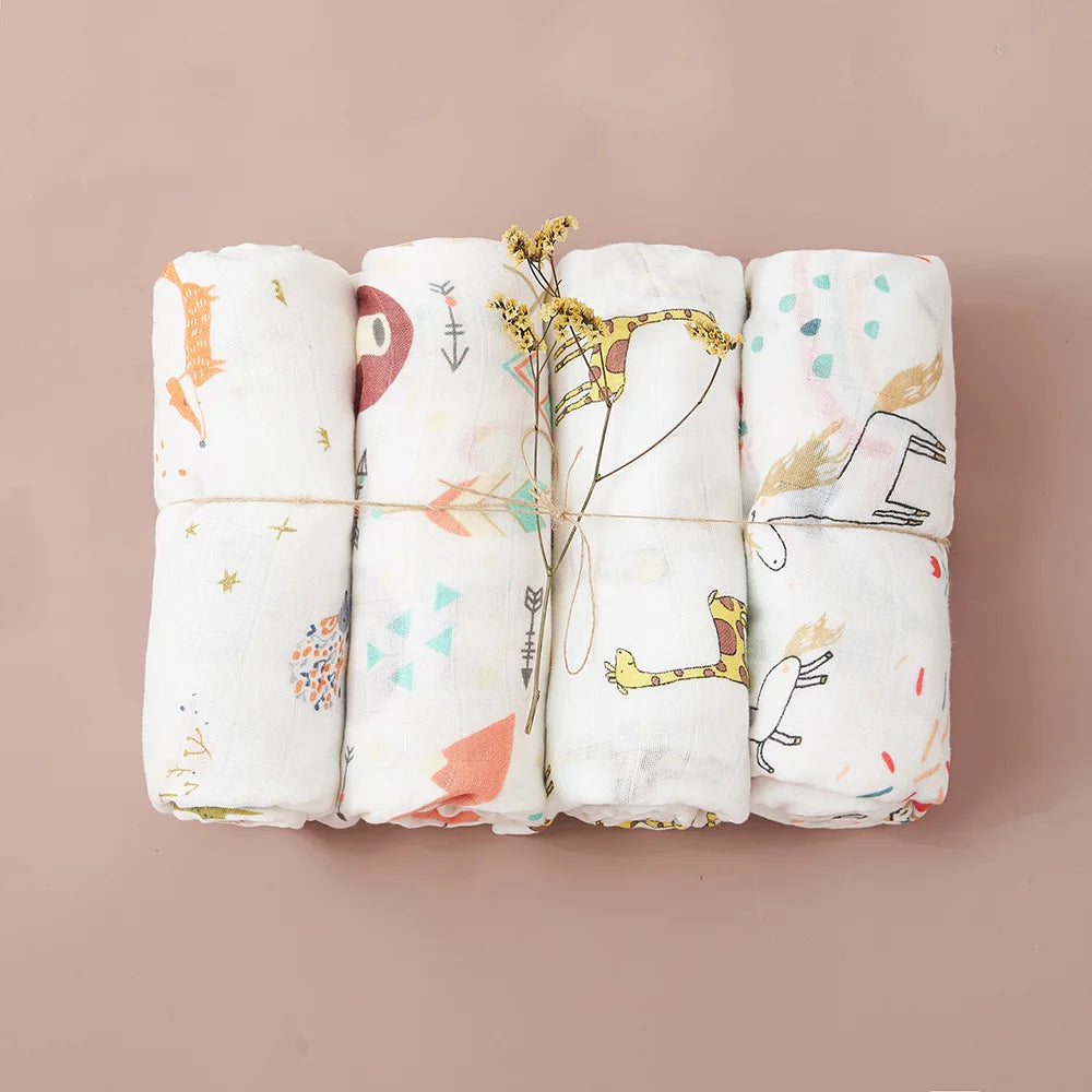 Kangobaby #My Soft Life# 4pcs Set All Season Multifunctional Baby Muslin Swaddle Blanket Newborn Bath Towel Infant Wrap Quilt