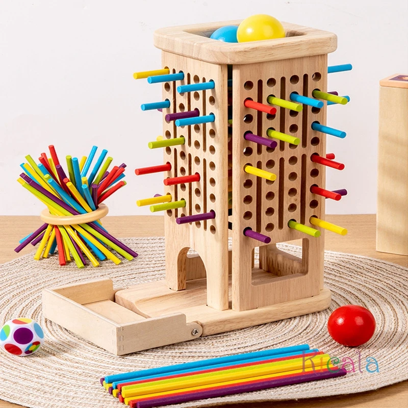Montessori Game Wooden Stick Tower Toy With Sticks Dice Motor Skills Development Stick Counting Math Educational Toy For Kids