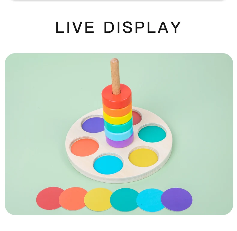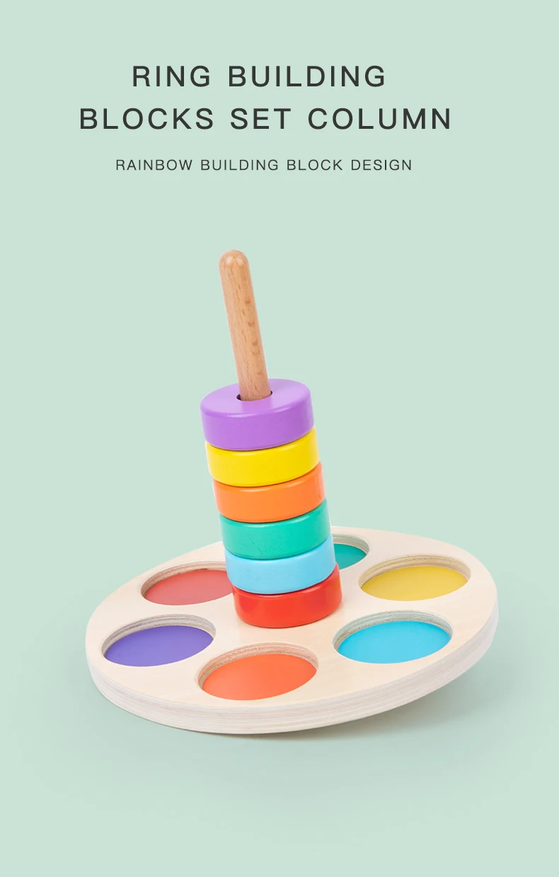 Montessori Toys Rainbow Stacking Ring Tower Board Baby Early Educational Teaching Aids Wood Toddler Baby Toy for Children Colors