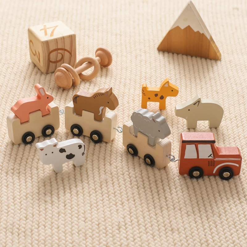 Montessori Toys Wooden Train Birthday Toy Baby Educational Toys Wooden Trolley Baby Learning Toys Number Of Wood Baby Toys Gifts