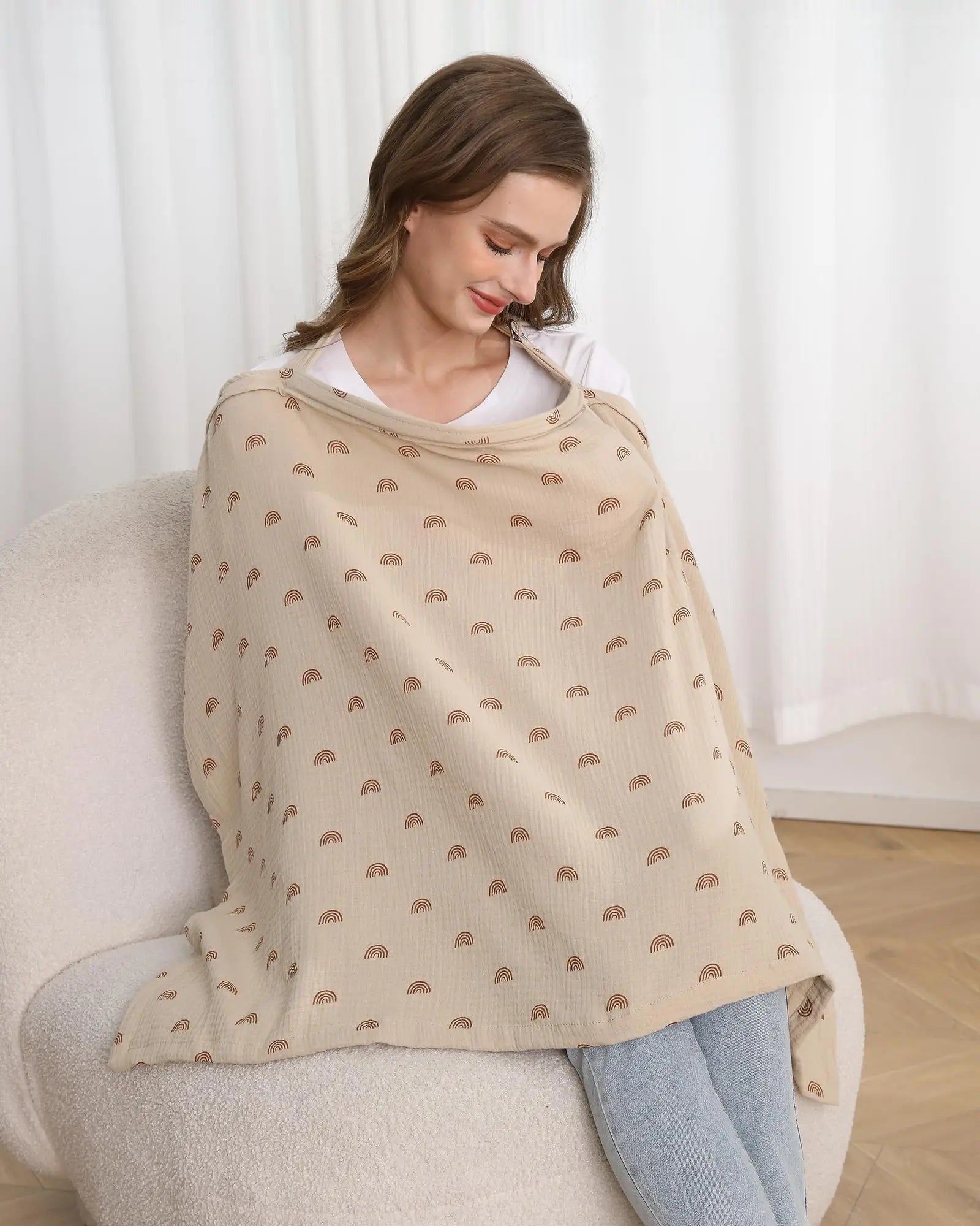 Premium Muslin Material: The nursing cover is crafted from soft and breathable 100% cotton muslin, Include Muslin Nursing Cover.