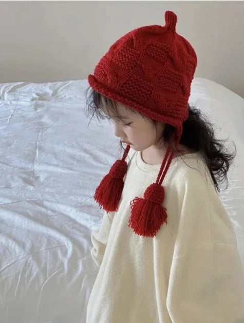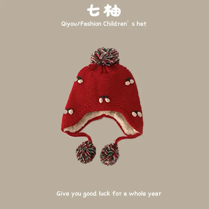Red New Year Baby Hat Knitted Overhead Cap Cute Winter Infant Knitwear Ideal for Autumn And Winter Celebrations And Greetings