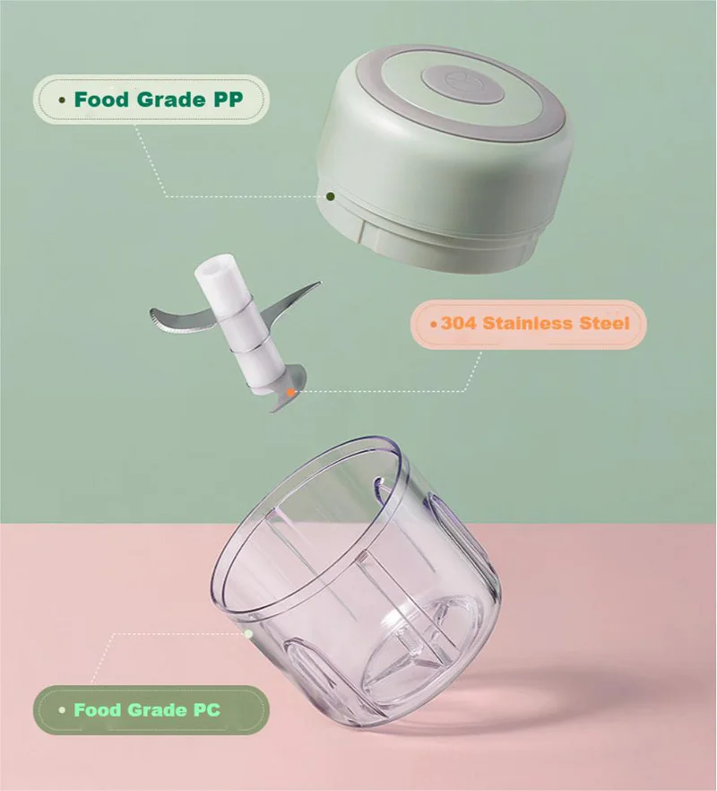 1.【Safety Material】Electric food-grade PP plastic, BPA-free, 304 stainless steel blade. Will not be blunt, bend, or rust.