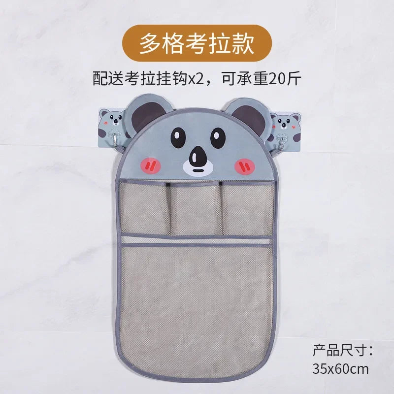 Baby Bathroom Mesh Suspendable Shower Products Game Bag Cute Cartoon Transparent Multifunction Bath Toy Organizer with 2pcs Hook