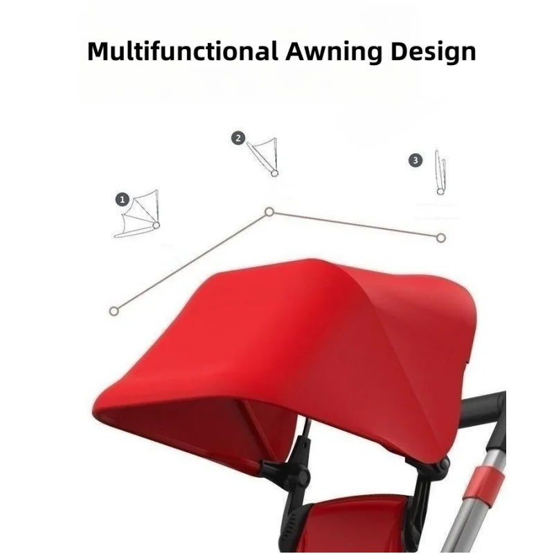 1. It can be seated, ridden, and pushed. The shed, guardrail, and push handle can be disassembled into a simple tricycle for independent riding
