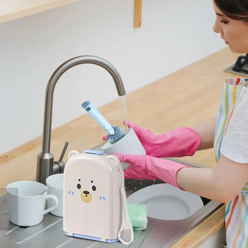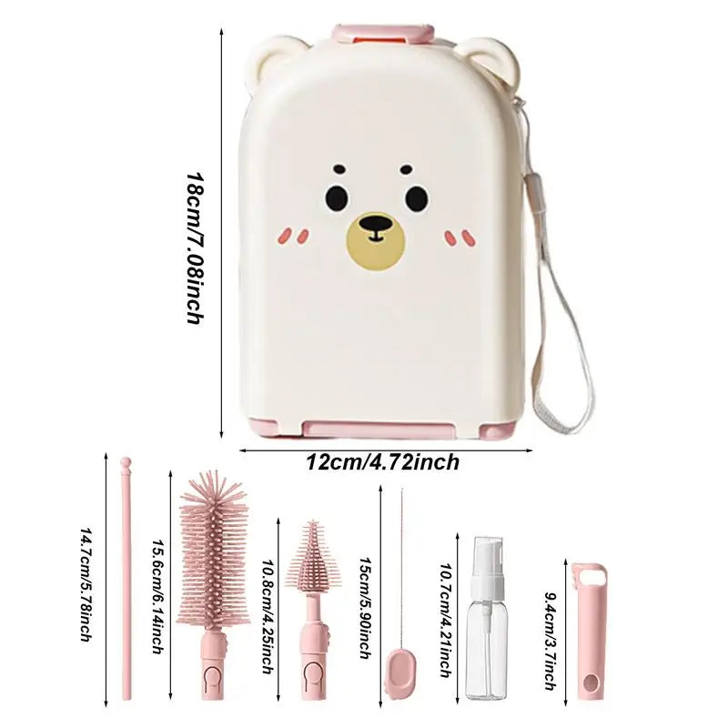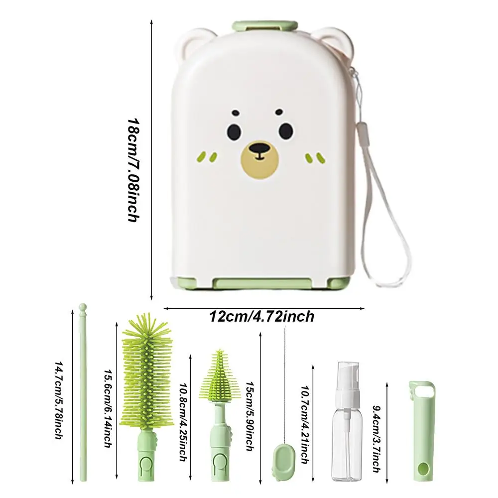 5.Safe to Use: Say goodbye to dirty bottles, nipples, and food bowls with our Travel Bottle Brush Set. Made from food-grade material, it ensures safe and simple cleaning. Plus, it's safe to use on your child's feeding accessories