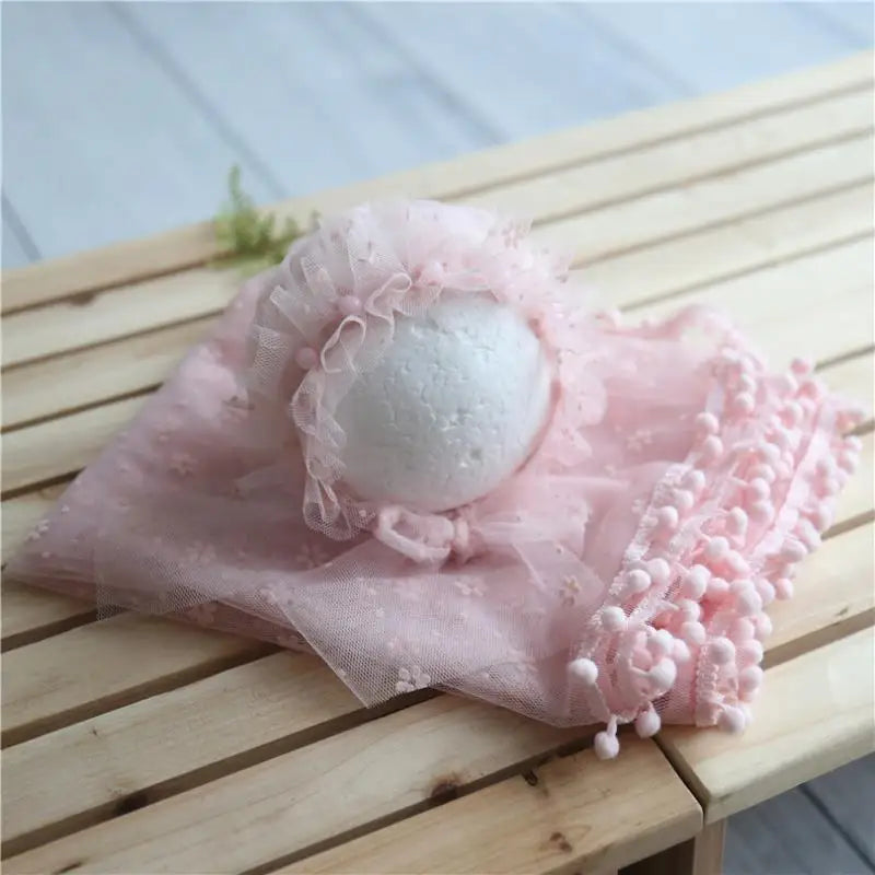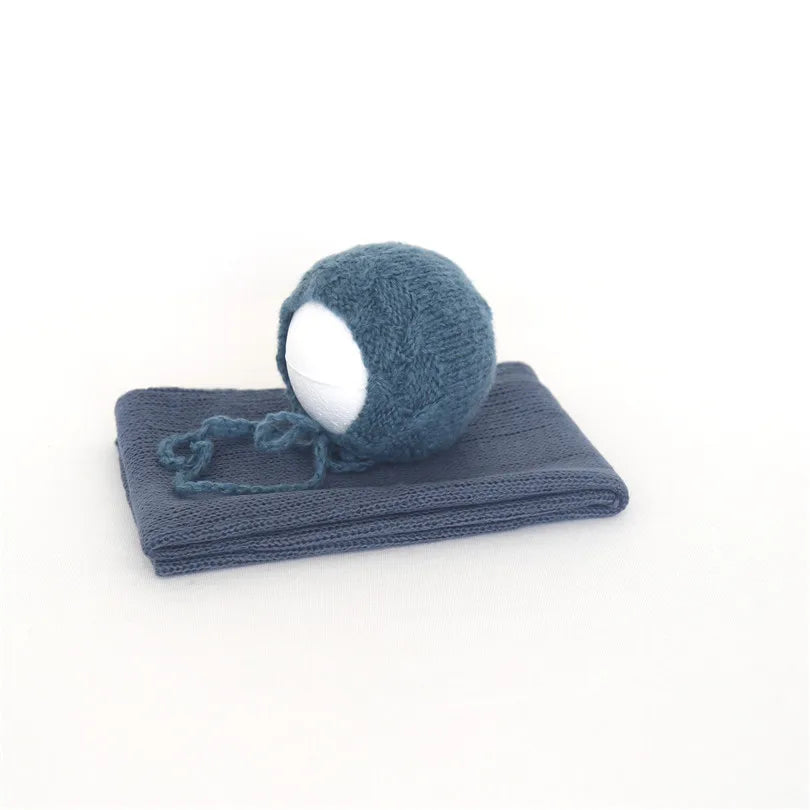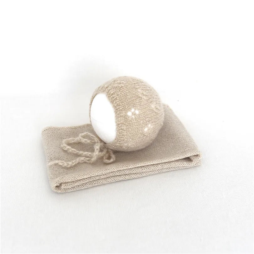 New born Knit Wrap Set Vintage Baby Bonnet Stretch Knit Wrap Newborn Hat Cap Photography Prop Layering Fabric Swaddling Blanket