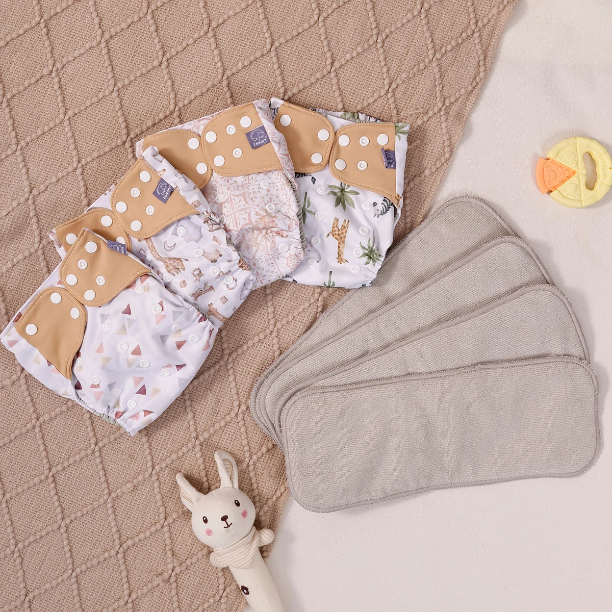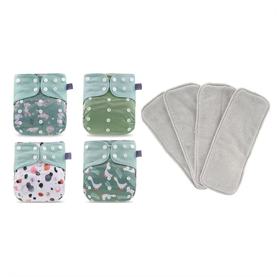 4 Pcs Waterproof Baby Cloth Diaper With 4 Inner For 3-15kg Washable Eco-friendly Pocket Cloth Nappy