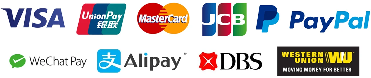 Paypal,TT,Credit/Debit card,Western Union,Online Bank Payment etc.